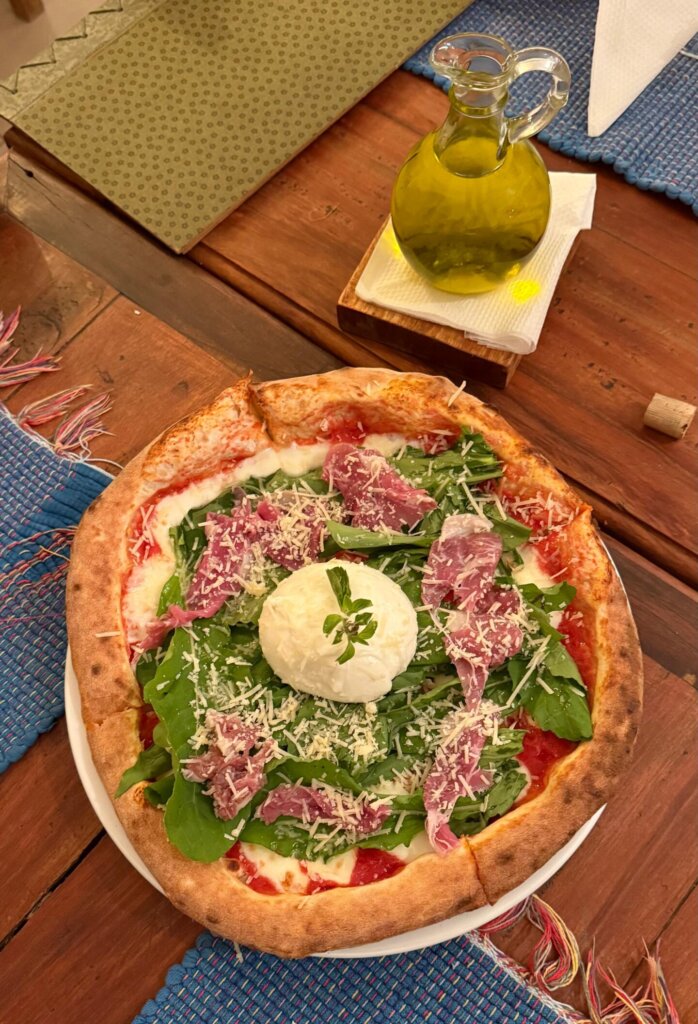 Eu sou fã de pizza. Já provei a melhor da Europa, a do melhor pizzaiolo do Brasil e até a “pizza” argentina, além daquela, em fatias, de Nova York. Dito isso, provei e aprovei a pizza Parmesina da Porco e Pizza (89,00) – que merecia até mais atenção – em Cunha. Uma massa de fermentação natural com acidez na medida, molho de tomates san marzano como manda o figurino e uma burrata que eu acredito ser da região.