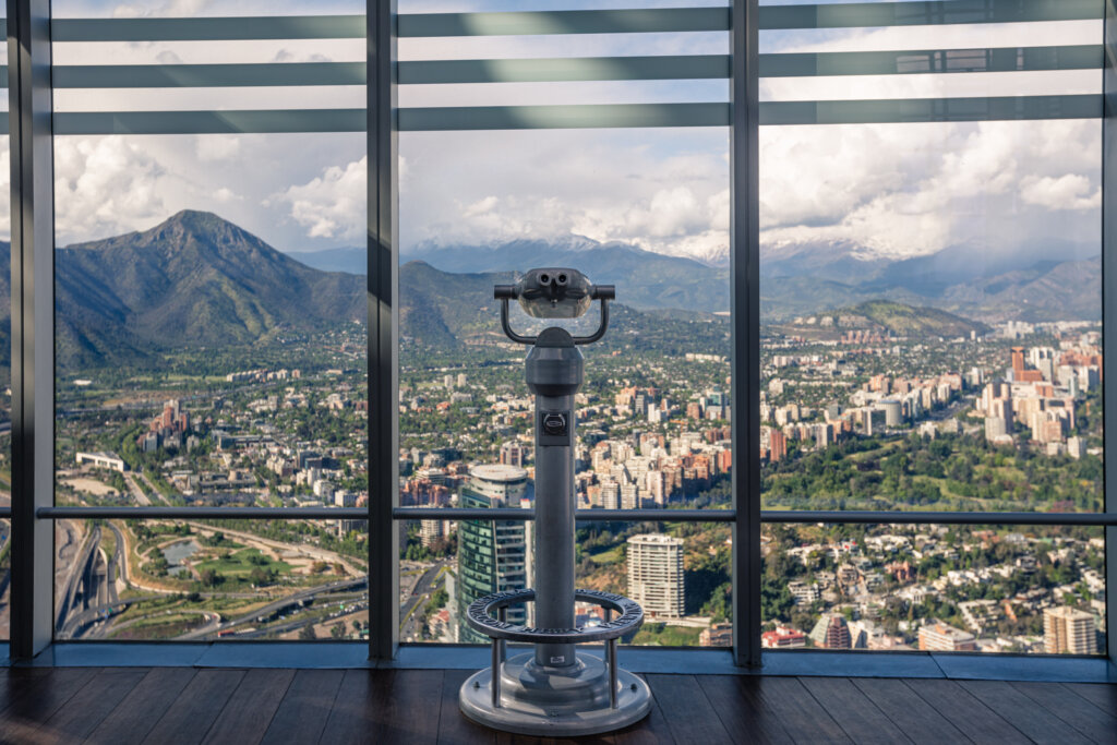 Nosso ponto de partida foi o Sky Costanera, o mirante mais alto da América do Sul. Desde seus 62 andares e 300 metros de altura, vimos a cidade e tivemos dimensão de sua geografia dividida entre bairros mais culturais como Lastarria e outros, mais históricos, como Los Dominicos.